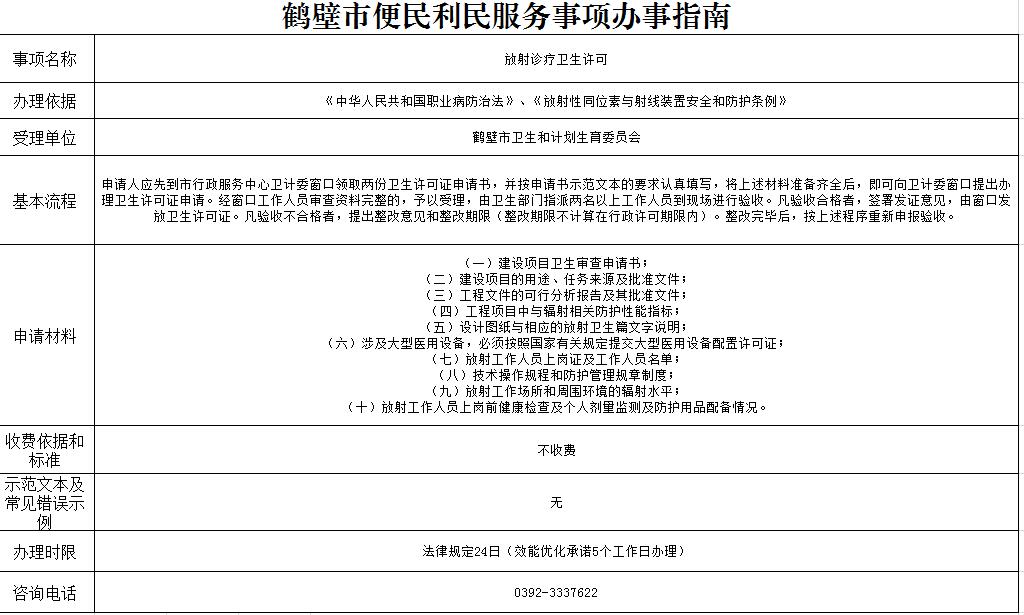 放射诊疗卫生许可