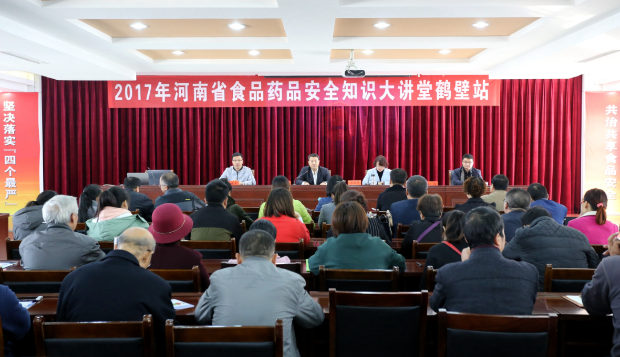 10月24日上午,2017年河南省食品药品安全知识大讲堂鹤壁站在市食品药品监管局六楼会议室举办,全市食品药品监管系统工作人员、药品医疗器械经营企业、医疗机构、餐饮单位从业人员及8个县区群众150余人参加活动。