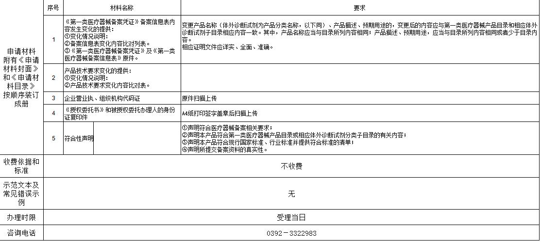 第一类医疗器械产品变更备案