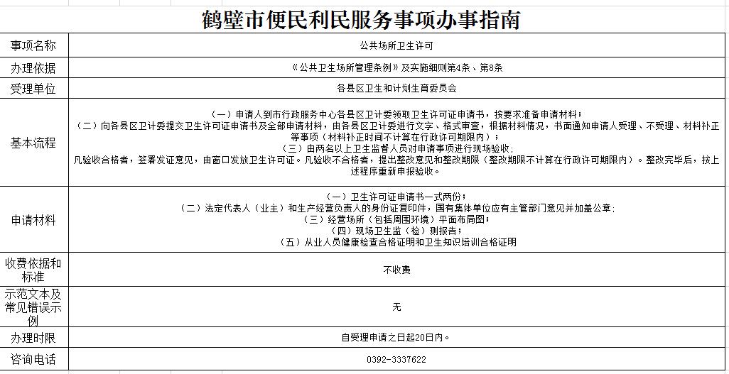 公共场所卫生许可