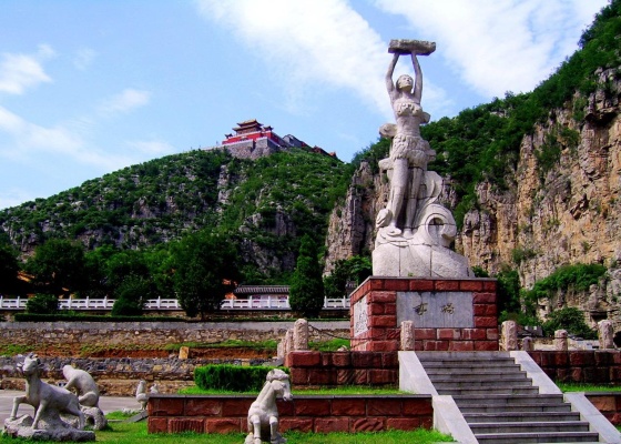 女娲峰:位于景区女娲宫西南虎山北侧,高 70多米,天造地设,鬼斧神工,堪称华夏奇观,天下一绝.