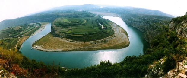 淇河天然太极图坐落在太行山东麓,鹤壁市区西北5公里处的上峪乡境内,自然分布约100万平方米,是我国最大的“天然太极图”。这里山清水秀、风光优美,文物古迹随处可见,有商周文王姬昌的观图台、晒网坡、棋盘山、文王潭,有春秋许穆夫人垂钓处、元代古柏、明朝青岩寺、古瓷窑遗址等等。深厚的历史文化韵味、悠久的历史文化遗产和俊秀怡人,水影山光的淇河风光融为一体,形成了具有鬼斧神工般的奇景妙色。天然太极图就镶嵌在这淇河两岸,荡荡淇水呈反S型环绕阴阳二鱼,阴鱼昂首向西、甩尾东北,阳鱼仰面向东、摆尾西南,纵恒坎离,威然天威。相传这里曾是周文王隐居研卦的地方,也是我国易经文化的发源地,文化之深厚为历史罕见。